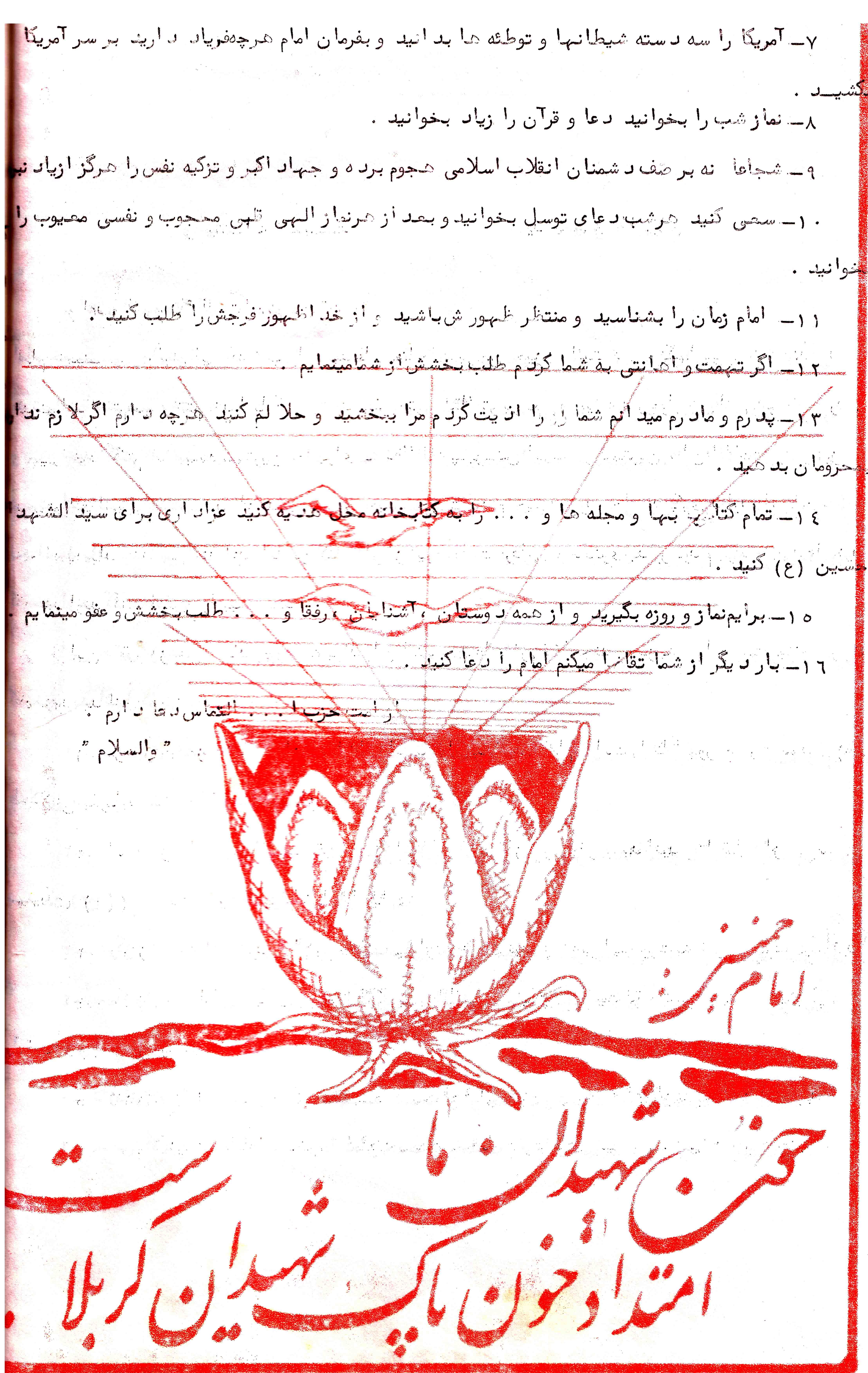 15-برایم نماز و روزه بگیرید و از همة دوستان، آشنایان، رفقا و... طلب بخشش و عفو می نمایم.